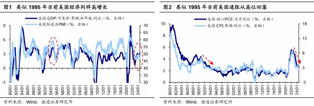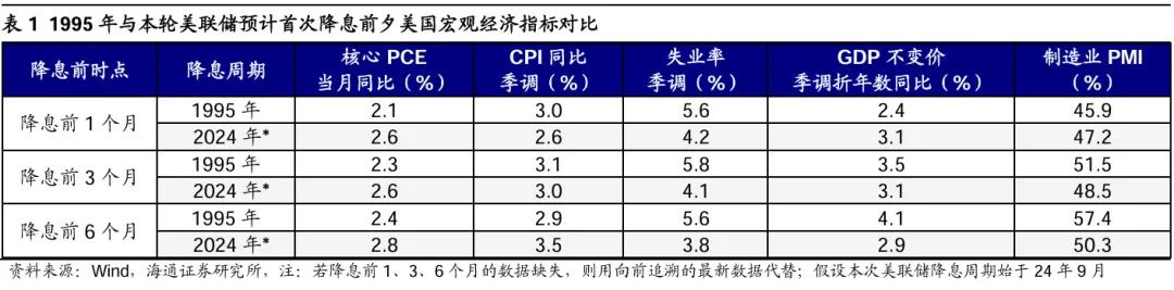 来源:海通研究之策略(ID:ht_strategy)]article_adlist-->核心结论:①本次美联储降息的海外环境更加复杂,美国经济类似1995年、美国大选即将到来、海外货币政策协调性下降。②历次美联储降息时中美经济与货币政策周期较为一致,但这次出现错位,未来关注可能推动基本面回暖的积极信号。③美联储预防式降息或助力A股流动性改善,中长期还需基本面修复验证,行业层面短期关注金融、消费行业,中期科技逐步占优。