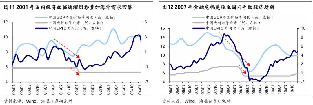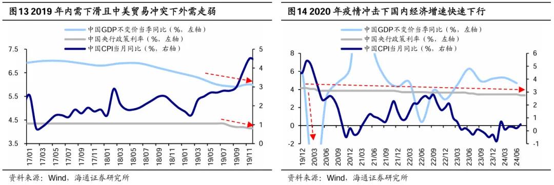 前文指出本次美联储降息的海外宏观背景相较以往更加复杂,多维度对比之下,我们认为这次进行预防性降息的可能性较大。回到国内,这次国内宏观背景与过去相比有何异同?历史上中美货币政策之间的联动性如何?下文展开详细分析。