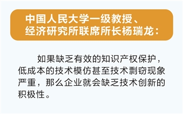“如果缺乏有效的知识产权保护,低成本的技术模仿甚至技术剽窃现象严重,那么企业就会缺乏技术创新的积极性。”中国人民大学一级教授、经济研究所联席所长杨瑞龙表示。通过技术创新、打造品牌等形成差异化竞争优势,往往意味着更多的研发成本与时间积累,但如果企业正当的权利得不到保护,假冒伪劣、制假售假等行为得不到打击,那么企业就倾向于采取短期有效的价格战来应对市场竞争。