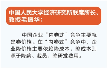 毛振华表示,在“内卷式”竞争中,企业降价格主要依赖降成本,降成本则源于降薪、裁员、降研发费用。这些方式,从小处说会让企业的创新能力受限、发展后劲减弱,从大处说会让社会有效需求萎缩,加剧供需关系失衡,进而导致“内卷式”竞争的扩大化,陷入难以摆脱的恶性循环。